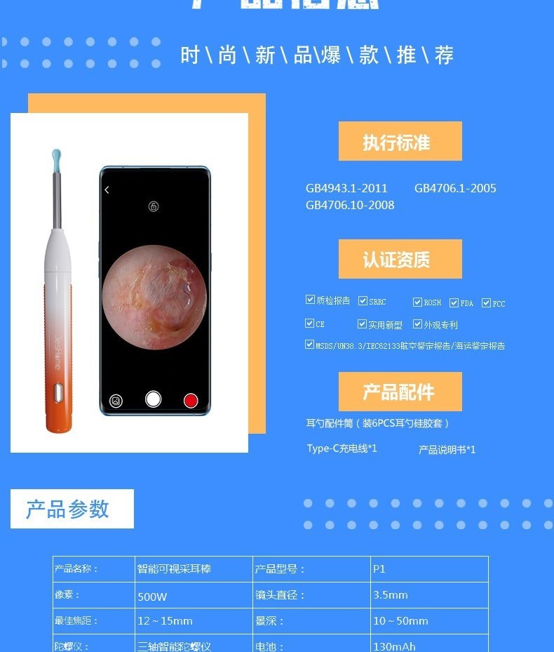高清智能可視挖耳勺目前大量現貨,支持智能電子產品