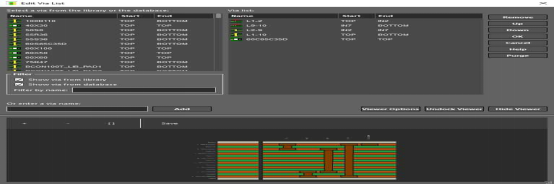 PCB設(shè)計工具中的過孔列表顯示了不同過孔的類型和配置